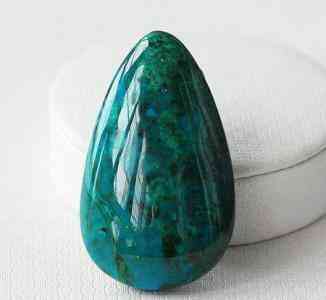 硅孔雀石的外表和孔雀石的极为相似,但硅孔雀石具有比绿松石鲜艳的绿色、蓝绿色,并为亚透明,且折射率、密度、硬度均比绿松石低。