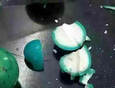 2⃣我们将酸和水比例为1:2的盐酸滴在绿松石的表面,如果是再造绿松石,表面的蓝色会变成浅绿蓝色的,而且用白棉球擦拭还会掉色。