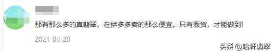 纵观各位网友的评论,可以发现“假货”“便宜”等词汇是高发词,从中便能品出些许拼多多翡翠的不对劲来。