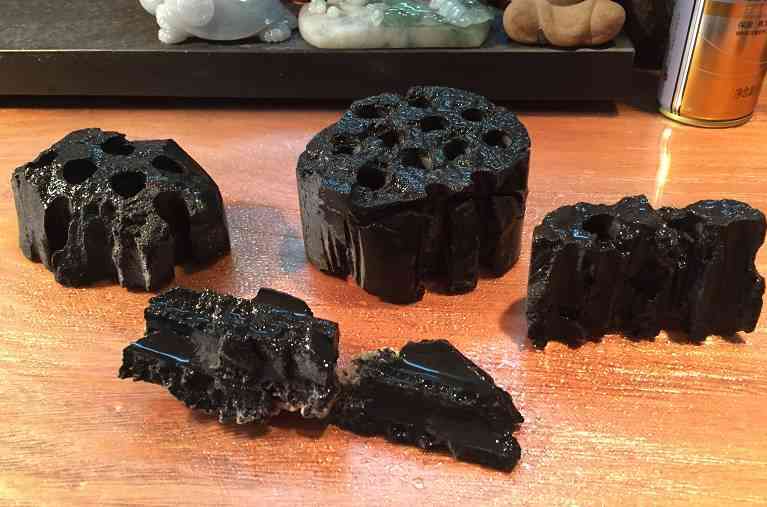 别怀疑,它就是“蜂窝煤”。采用黑色石英岩雕刻的蜂窝煤往那一放,有几人能够看出真假,别觉得如此接地气的创作没有市场,在这个审美需求千奇百怪的时代,没有什么不可能。