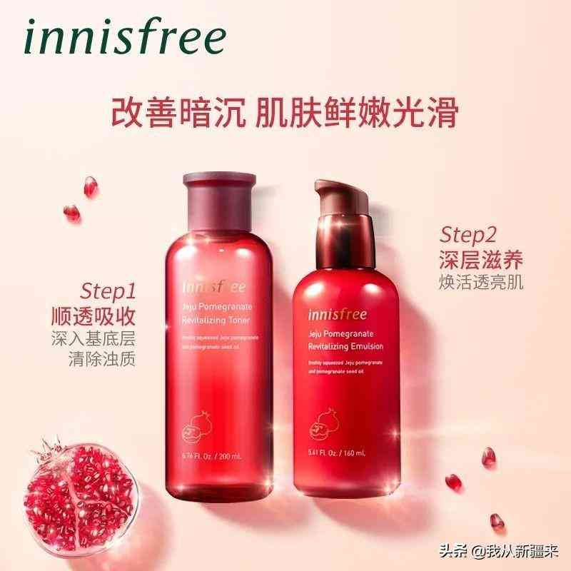 比如,在小红书上被众多美妆博主频频安利的韩国平价化妆品品牌——悦风诗吟,将石榴籽油与生石榴汁提纯处理后打造出了一款集补水和修护于一体的活妍焕彩水乳套装。