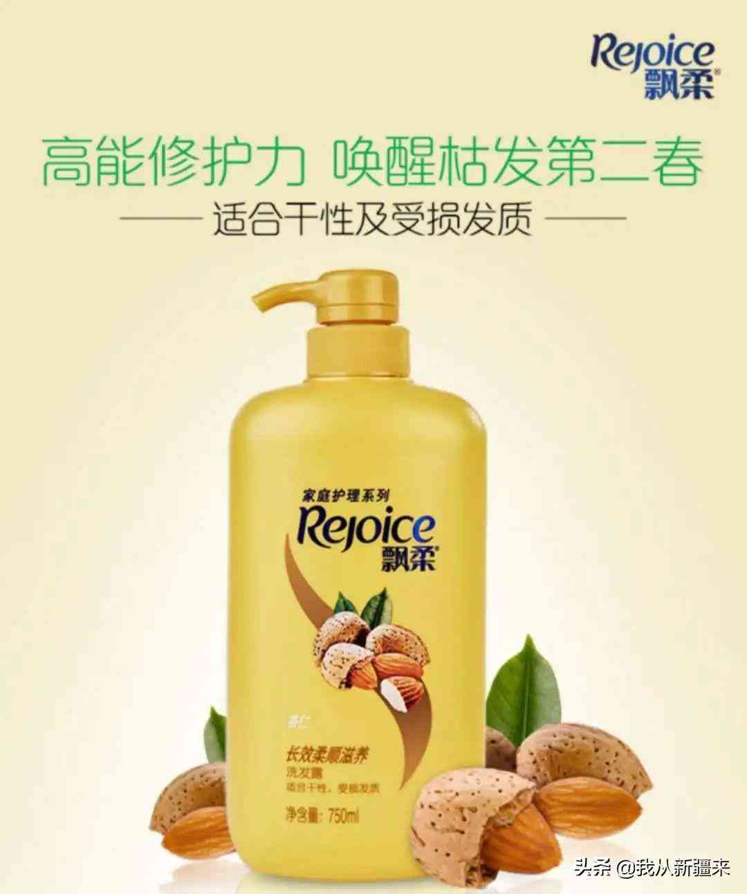 比如,大家耳熟能详的国民级洗发水品牌——飘柔。它旗下有一款含有杏仁成分的洗发水,具有修护损伤毛发、洁净顺滑、滋养抚燥的作用,还你一头乌黑亮丽的头发。