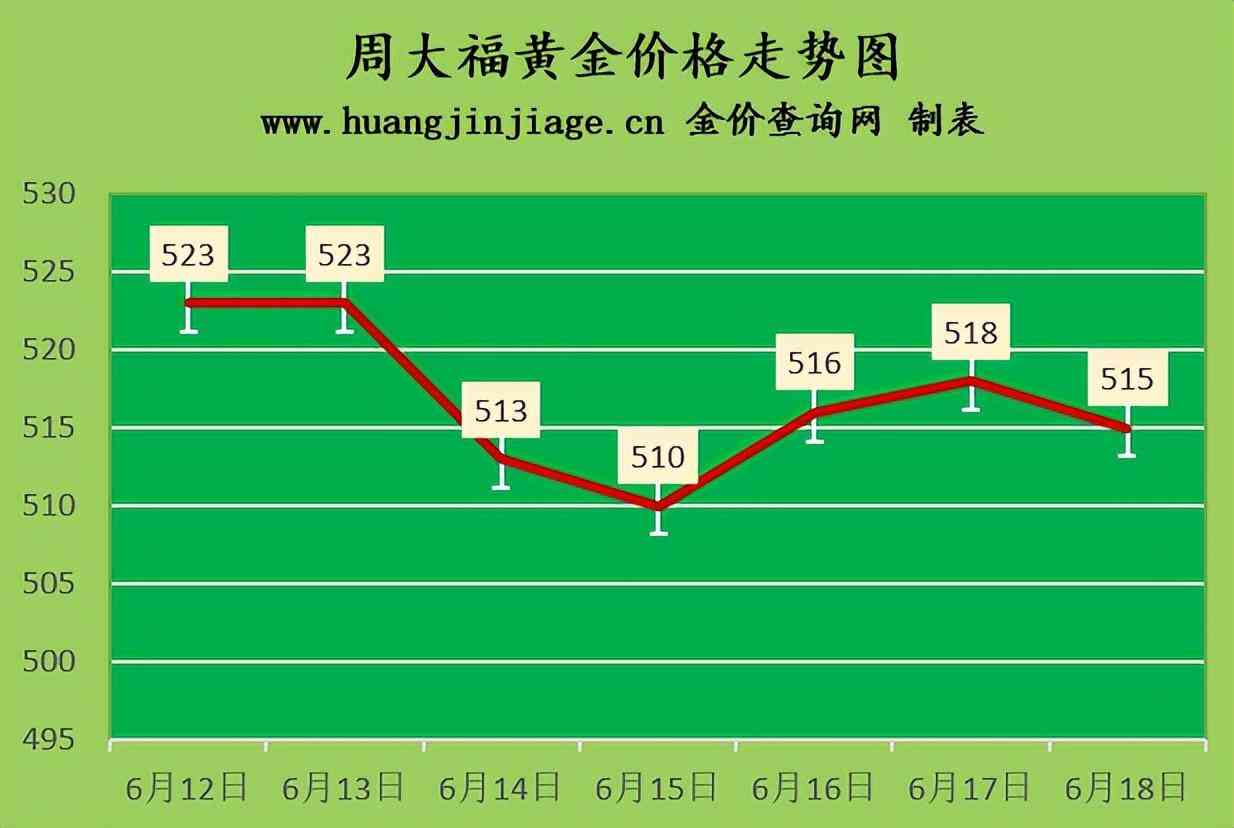 周大福黄金价格515元/克(跌3元),六福黄金价格515元/克(跌3元),周生生黄金价格516元/克(跌2元),金至尊金价515元/克(跌3元),谢瑞麟金价515元/克(跌3元),老凤祥黄金价格520元/克(涨2元),老庙黄金价格515元/克(跌3元),菜百金价513元/克(持平),周大生金价515元/克(跌3元),中国黄金价格509元(持平),金大福金价510元/克(跌3元),潮宏基金价515元/克(跌3元),周六福黄金价格516元/克(跌3元)。