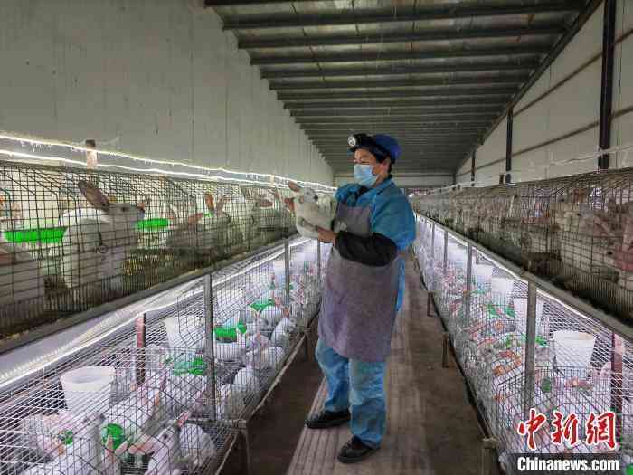 山东省聊城市茌平区肖家庄镇小高村一家村办企业内,工人在查看兔子长势。 马红坤 摄