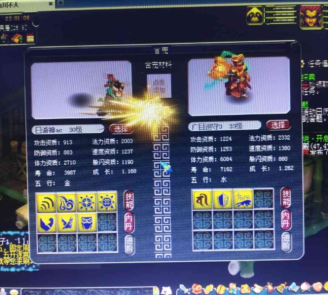 炼妖是很多玩家喜欢的休闲玩法,也很刺激,两只宝宝的“激情碰撞”,能让肾上腺素瞬间狂飙。一位粉丝玩家发来投稿,他准备了一波中等质量的炼妖,7技能日游神+3技能广目回炉。