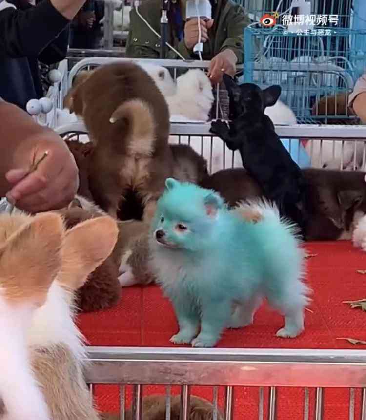 被染成蓝色的小狗,都没有小伙伴愿意和它玩了。/微博@公主与恶龙