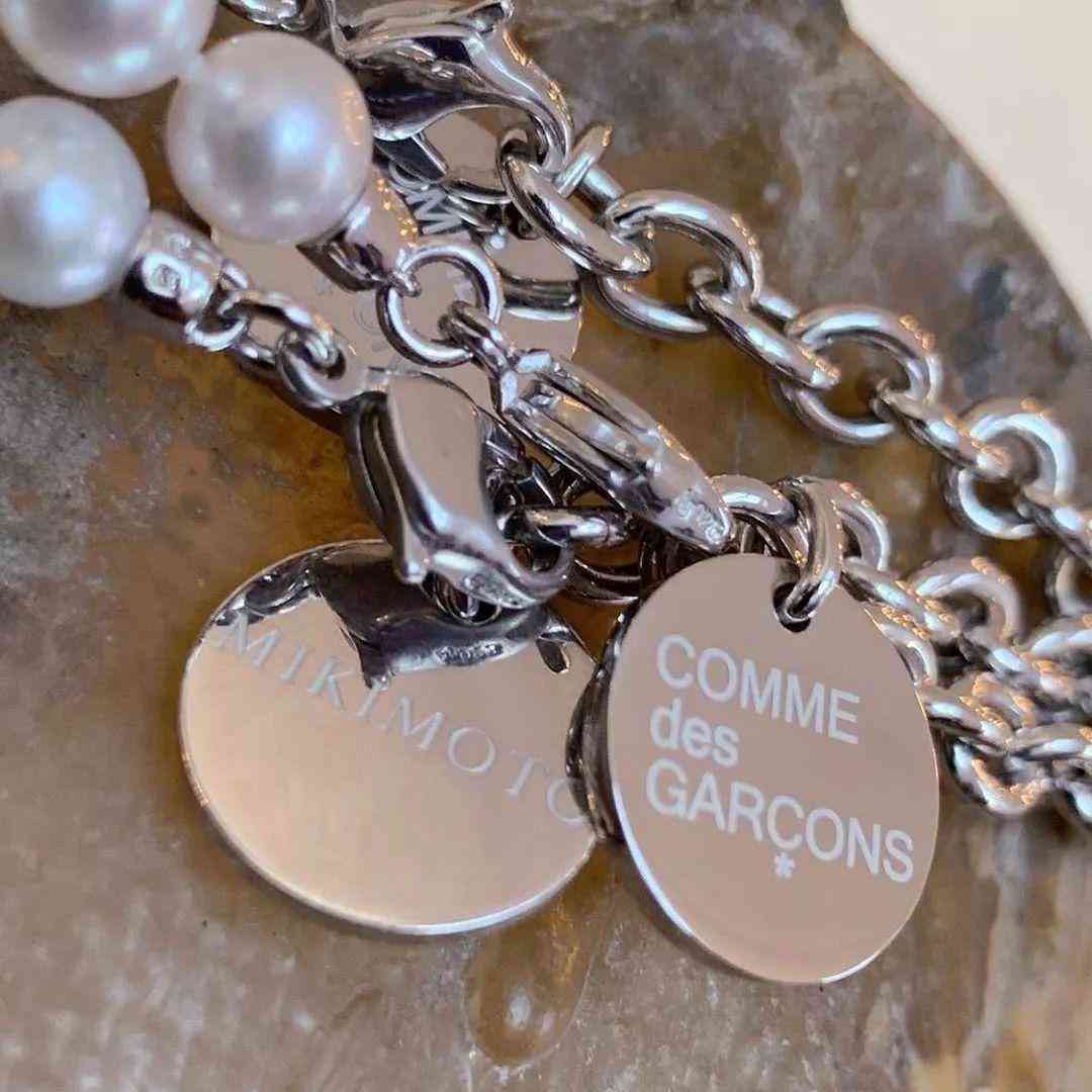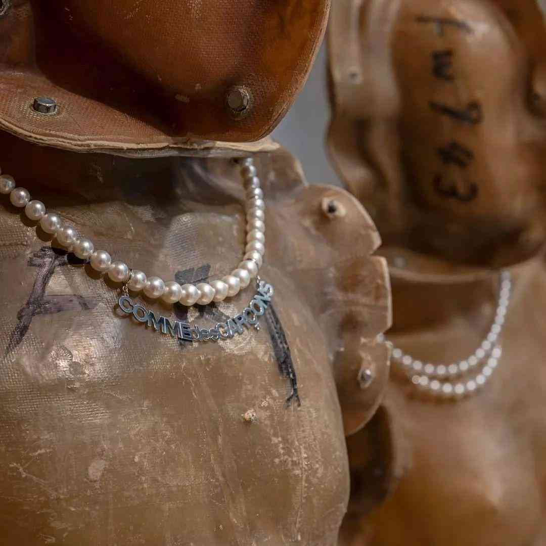 比如设计师川久保玲主理的时装品牌Comme des Garçons找到了“小伙伴”——以珍珠高级珠宝闻名的日本经典品牌Mikimoto——推出了一个共有7款以白色南洋珍珠或Akoya珍珠为主石的银质项链胶囊系列。