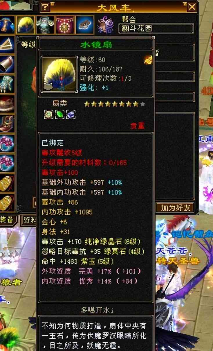 有的网友认为, 这个武器对于气武当来说绝对是极品中的极品,哪怕不是气武当,任何四修卡88的大佬都需要,毕竟一颗5级宝石也就加120点属性攻击,这相当于4颗5级属性宝石的加成。8万元宝的价格实在是便宜了,遇到喜欢的老板20万都是卖得出手的。