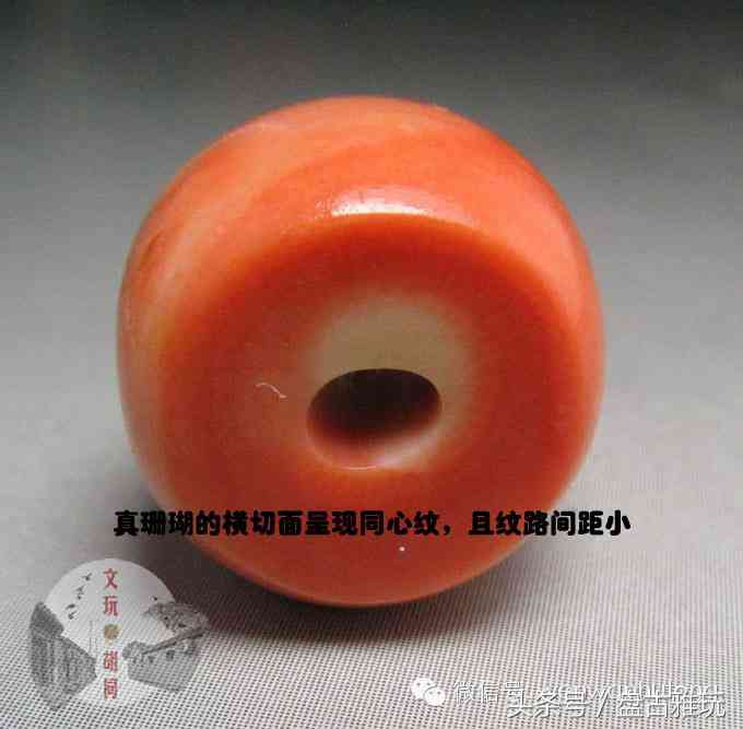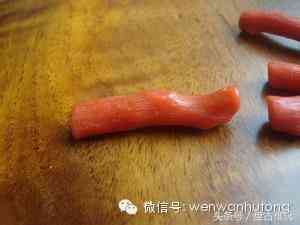 1.天然红珊瑚与染色红珊瑚的最大区别是纹路的走向,例如一个圆柱状的红珊瑚,首先从横截面看,天然的纹路是同心圆状,染色的是放射状纹路;侧面看,天然的是像水流状或漩涡状纹路,染色的是平行状纹路。