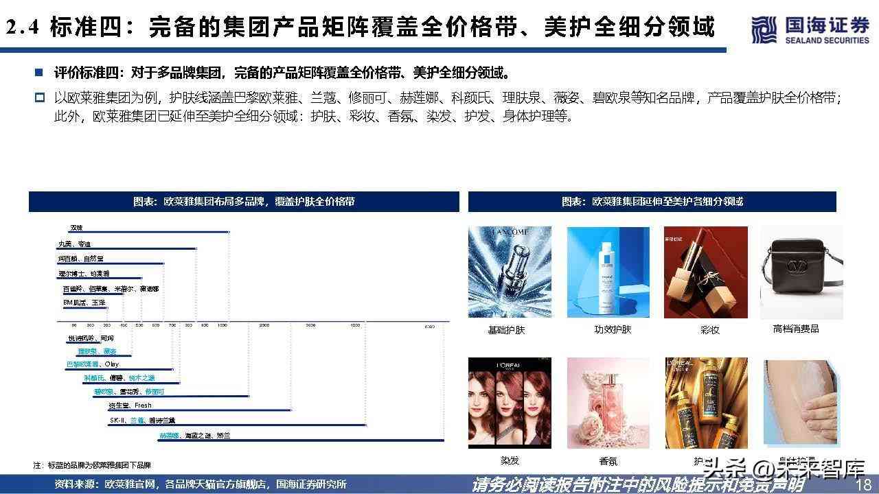 评价标准四:对于多品牌集团,完备的产品矩阵覆盖全价格带、美护全细分领域。以欧莱雅集团为例,护肤线涵盖巴黎欧莱雅、兰蔻、修丽可、赫莲娜、科颜氏、理肤泉、薇姿、碧欧泉等知名品牌,产品覆盖护肤全价格带; 此外,欧莱雅集团已延伸至美护全细分领域:护肤、彩妆、香氛、染发、护发、身体护理等。