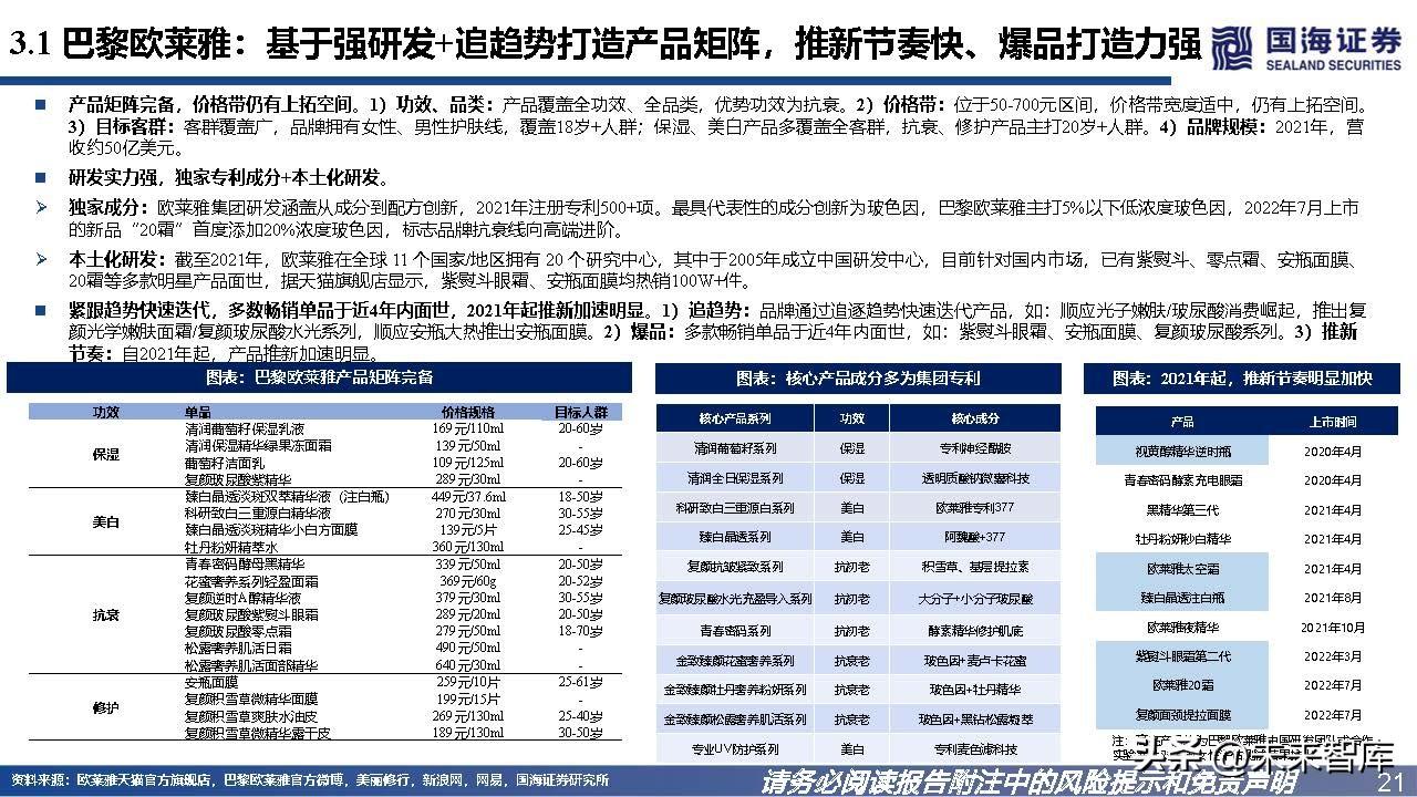 3.1、巴黎欧莱雅:基于强研发+追趋势打造产品矩阵,推新节奏快、爆品打造力强