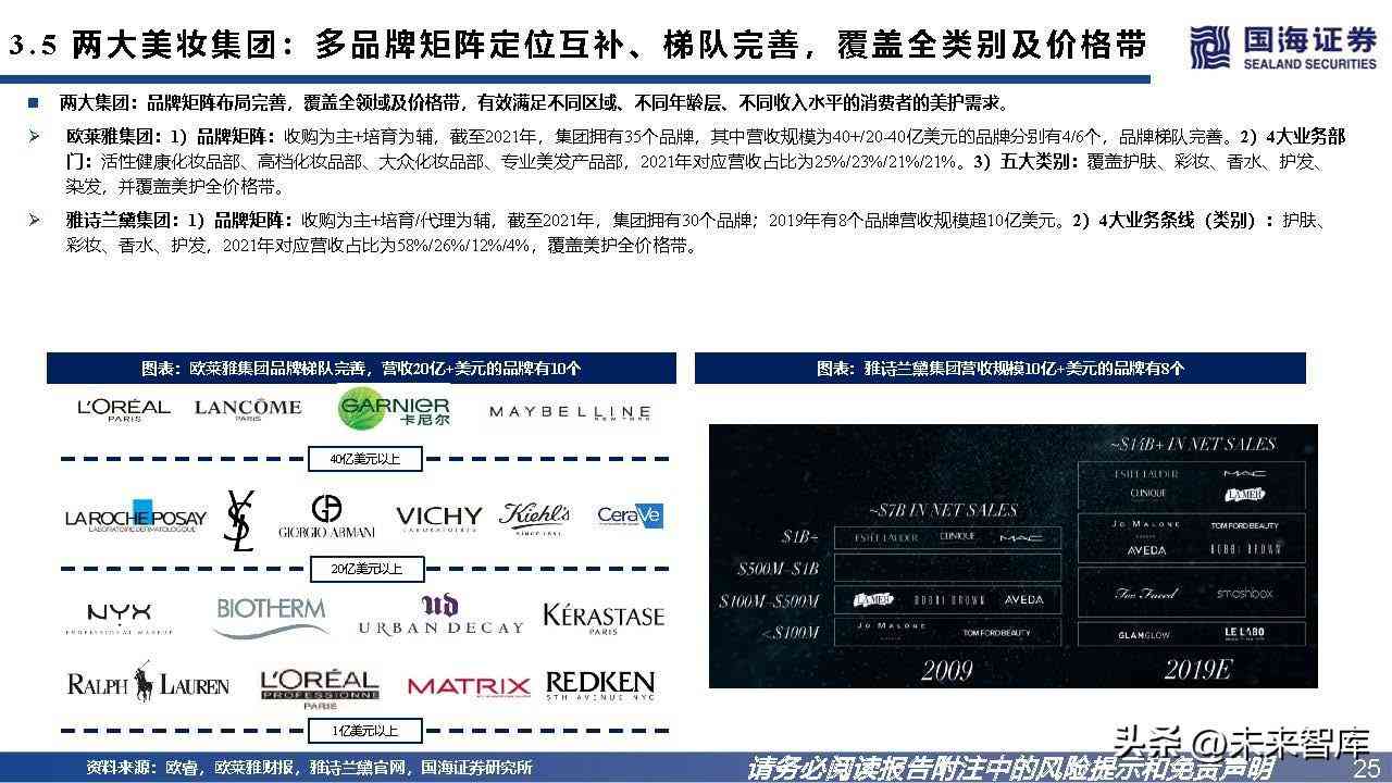 仅抗衰线产品储备完备,价格带延伸较为充分。1)功效、品类:产品覆盖全功效,主打抗衰+修护,仅抗衰线覆盖全品类。2)价格带:位于300-4300元区间,价格带 较宽。3)目标客群:客群覆盖广,品牌拥有女性、男性护肤线,覆盖18岁+人群,主打25岁+抗衰人群;其中,抗衰线年龄区隔明显,分系列满足18岁+/25岁+/40岁+ 抗衰需求。4)品牌规模: 2021年,营收约40亿美元。