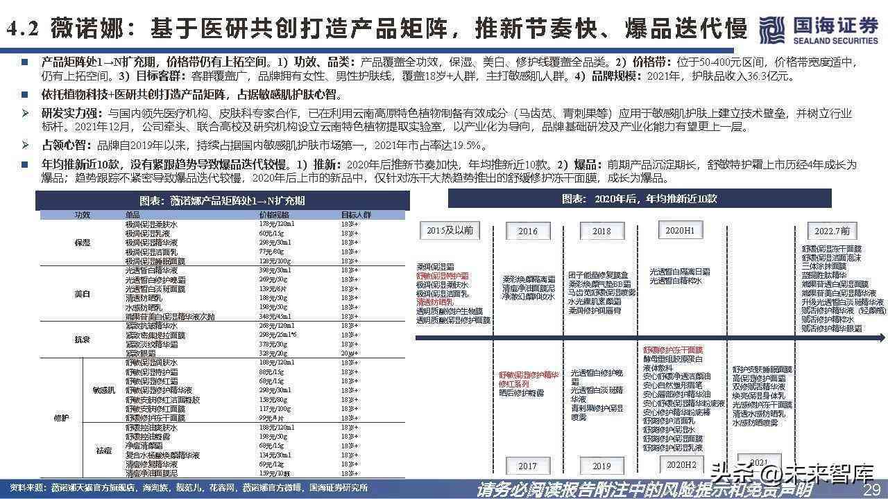 4.2、薇诺娜:基于医研共创打造产品矩阵,推新节奏快、爆品迭代慢