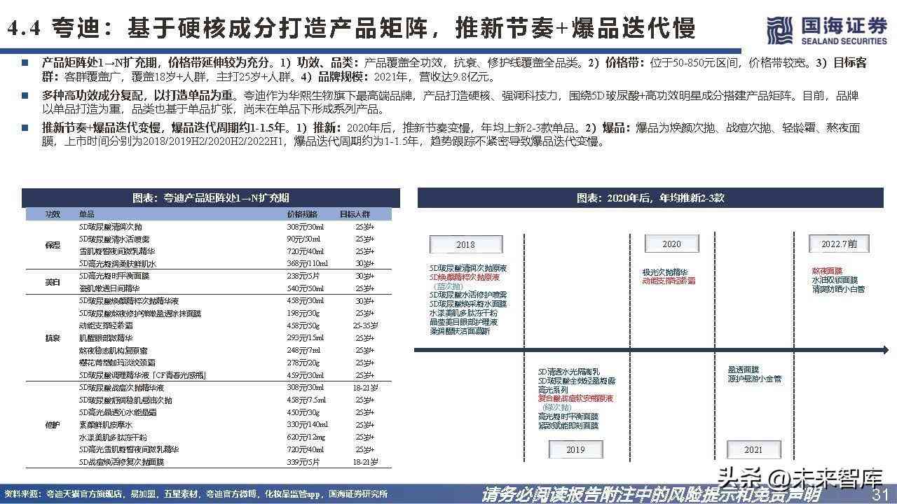 4.4、夸迪:基于硬核成分打造产品矩阵,推新节奏+爆品迭代慢