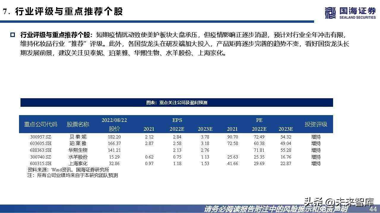 产品矩阵处1→N扩充期,价格带仍有上拓空间。1)功效、品类:产品覆盖全功效,保湿、美白、修护线覆盖全品类。2)价格带:位于50-400元区间,价格带宽度适中, 仍有上拓空间。3)目标客群:客群覆盖广,品牌拥有女性、男性护肤线,覆盖18岁+人群,主打敏感肌人群。4)品牌规模:2021年,护肤品收入36.3亿元。 依托植物科技+医研共创打造产品矩阵,占据敏感肌护肤心智。