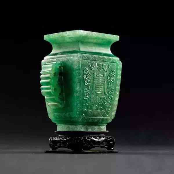 清乾隆 御制翡翠雕福寿纹螭龙耳四方瓶