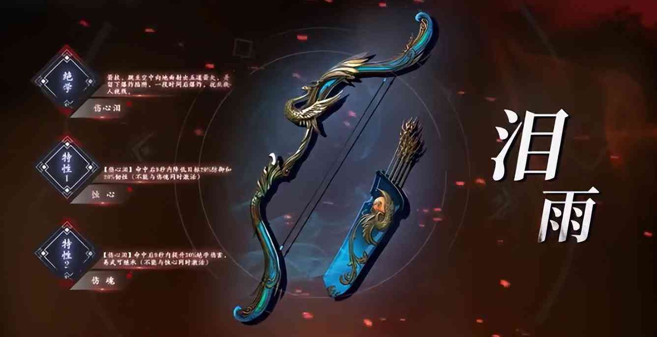 武器方面也更新了不少,比如这把全新的【泪雨】,颜值很高,特效很帅。外观上来说,蓝色清透的设计让人眼前一亮。尤其是弓箭袋的设计,蓝色渐变的袋体,配上黄色的亮眼宝石很吸睛。颜值高,战力不俗,梦中情弓了属实是~