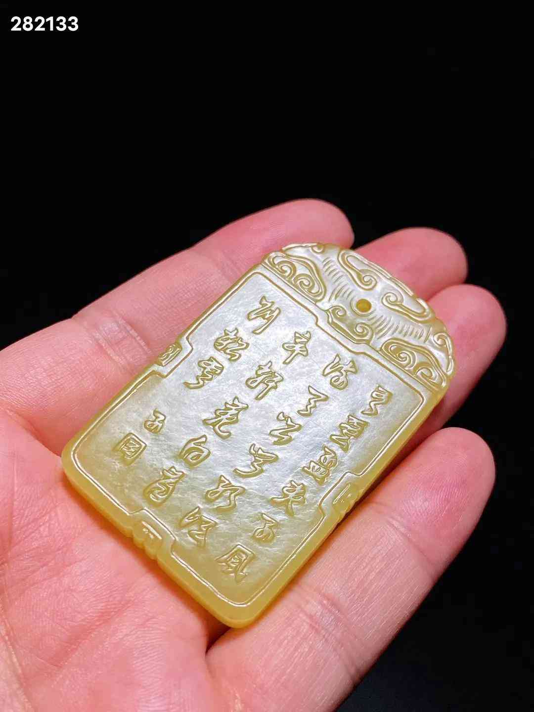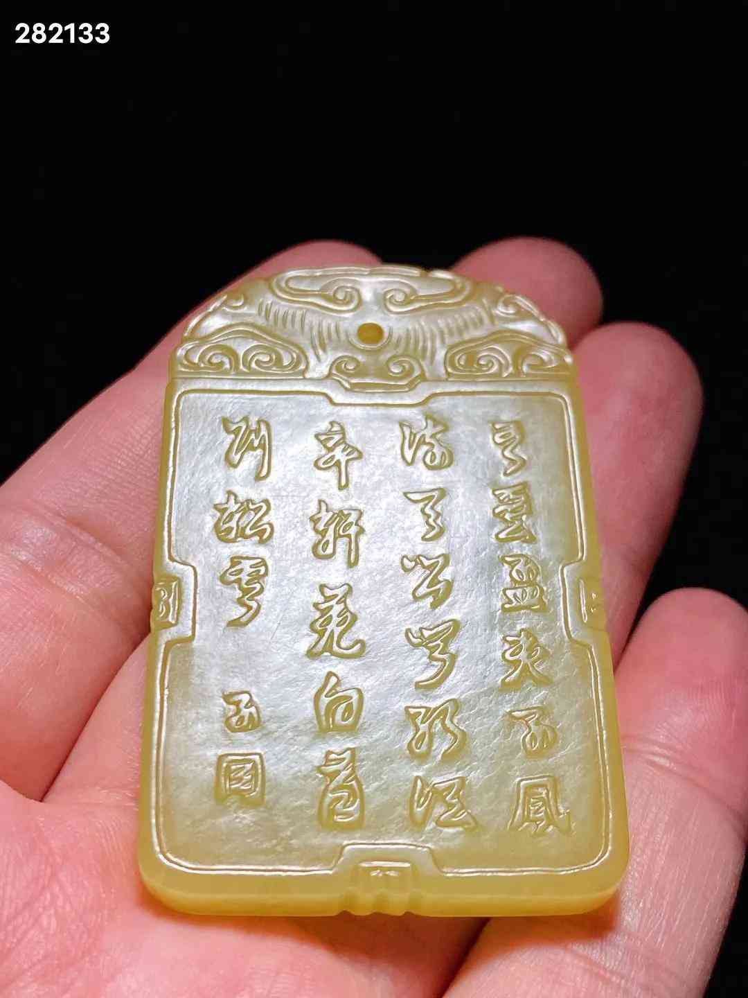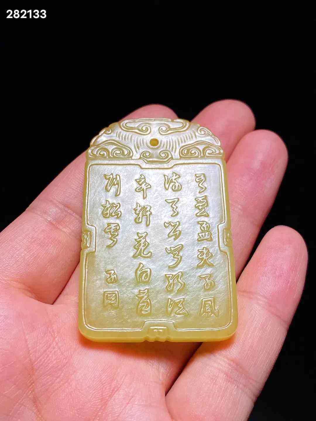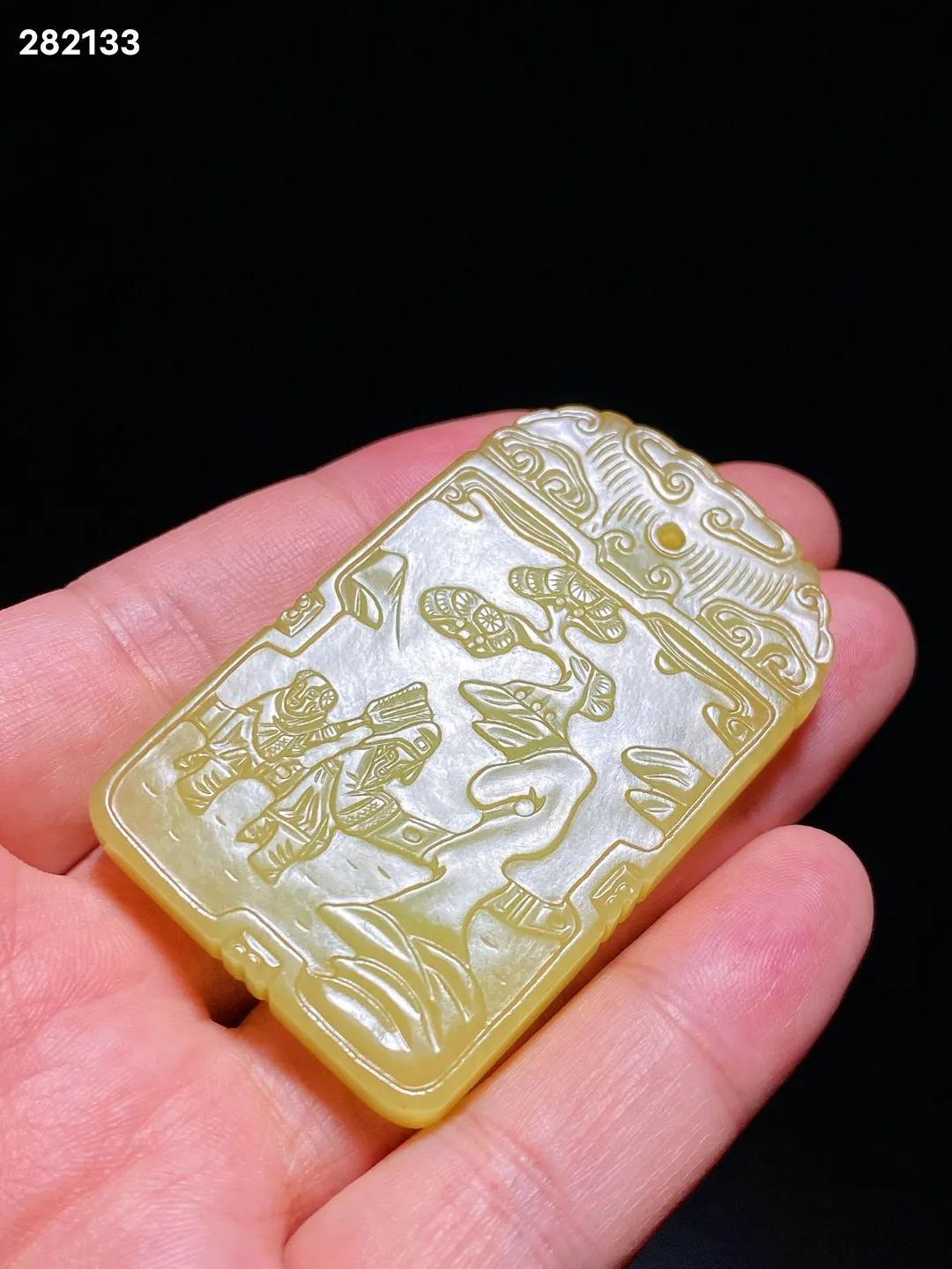 清中期 和田玉籽料 黄玉 米芾拜石 诗文牌 子冈牌 长3.8 宽0.7 高6.1厘米 重42.3克 牌取上好黄玉料琢制而成,色黄且正,柔和如脂。黄玉因其稀有罕见,产量很少,珍贵更甚羊脂白玉。牌首雕如意云纹,剔地阳起雕米芾拜石图,流云满天,古松遒劲,曲水之间,亭栏之内,米芾正躬身稽首,拜伏洞石,侍童执凉扇立于其后。构图舒朗,碾磨俐落,虽为浅浮雕,然沟壑之中过渡精细,更有圆雕逼真之趣,人物衣纹、髯发细入毫微,展现了制玉工匠精湛的艺术功力。玉牌背面开光内刻阳文行书诗句“吾爱孟夫子,风流天下闻。红颜弃轩冕,白首卧松云。”,落“子冈”二字款。米芾是北宋著名书画家,他一生博雅好石,精于鉴赏,对奇石的喜爱简直如痴如癫,毫无顾忌。「米芾拜石」是古代著名的文人典故,始传已久,清代玉雕中常见此题材。