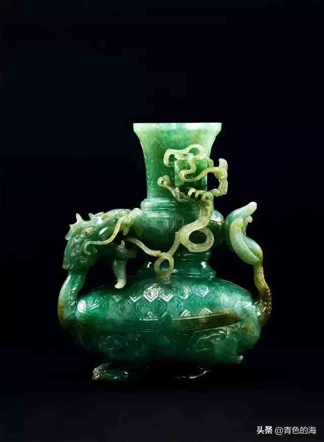 翡翠圆雕龙龟驮瓶