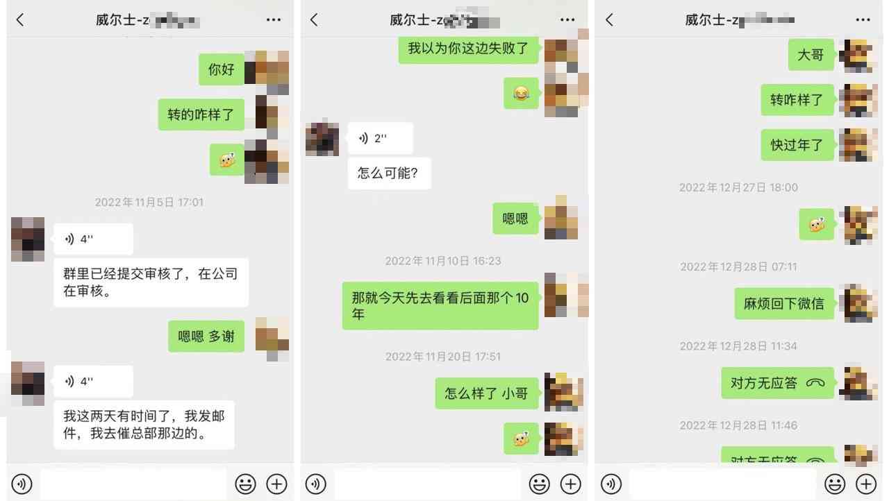 那位男销售隔着小圆桌,还给我展示了微信上一些转卡成功的聊天对话,说手头就有谈妥的现成客户,很快就能出售,之后就直接走公司流程,让我等着拿钱,稳赚不赔,还可以帮我做分期付款,手续费也由他承担,年底转卡后直接扣除。他还说,万一真转卖不出去,也能帮我原价退款,我无需承担任何风险。