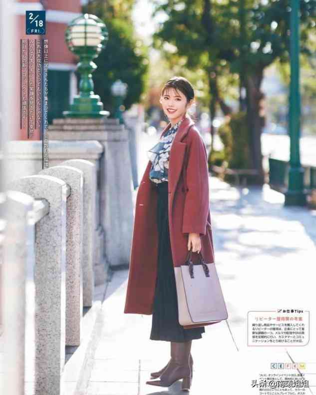 秋冬时节的长款外套是拉长身形的最好选择,内搭选用同样遮过膝盖长度的半身裙或连衣裙,叠穿长款的服装最有利于塑造纵向曲线。个头偏矮的女人这样塑造着装,很显精致感,又很显个头。