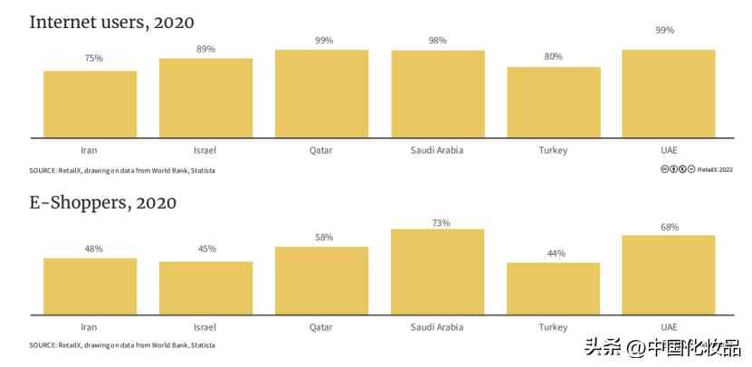 据分析机构RetailX数据显示,在他们统计的6个中东国家(伊朗、以色列、卡塔尔、沙特阿拉伯 、土耳其)中,互联网使用率已上升到90%,其中58%是网购者。