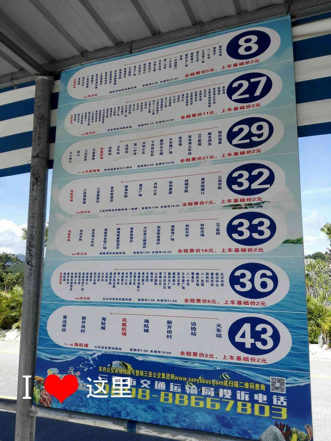 因为三亚的机场停车场在修建,一下飞机就有大巴免费送到公交站。之前查攻略是坐8路到鹿岭路口,我就在这痴痴地等啊,其实旁边就挺着一辆36路,同样也到目的地啊~~~所以,要仔细看站牌。另外,不要轻信网上的线路,百度也不总是准确的,特别是在三亚,不知道什么原因,特别不适用!!!