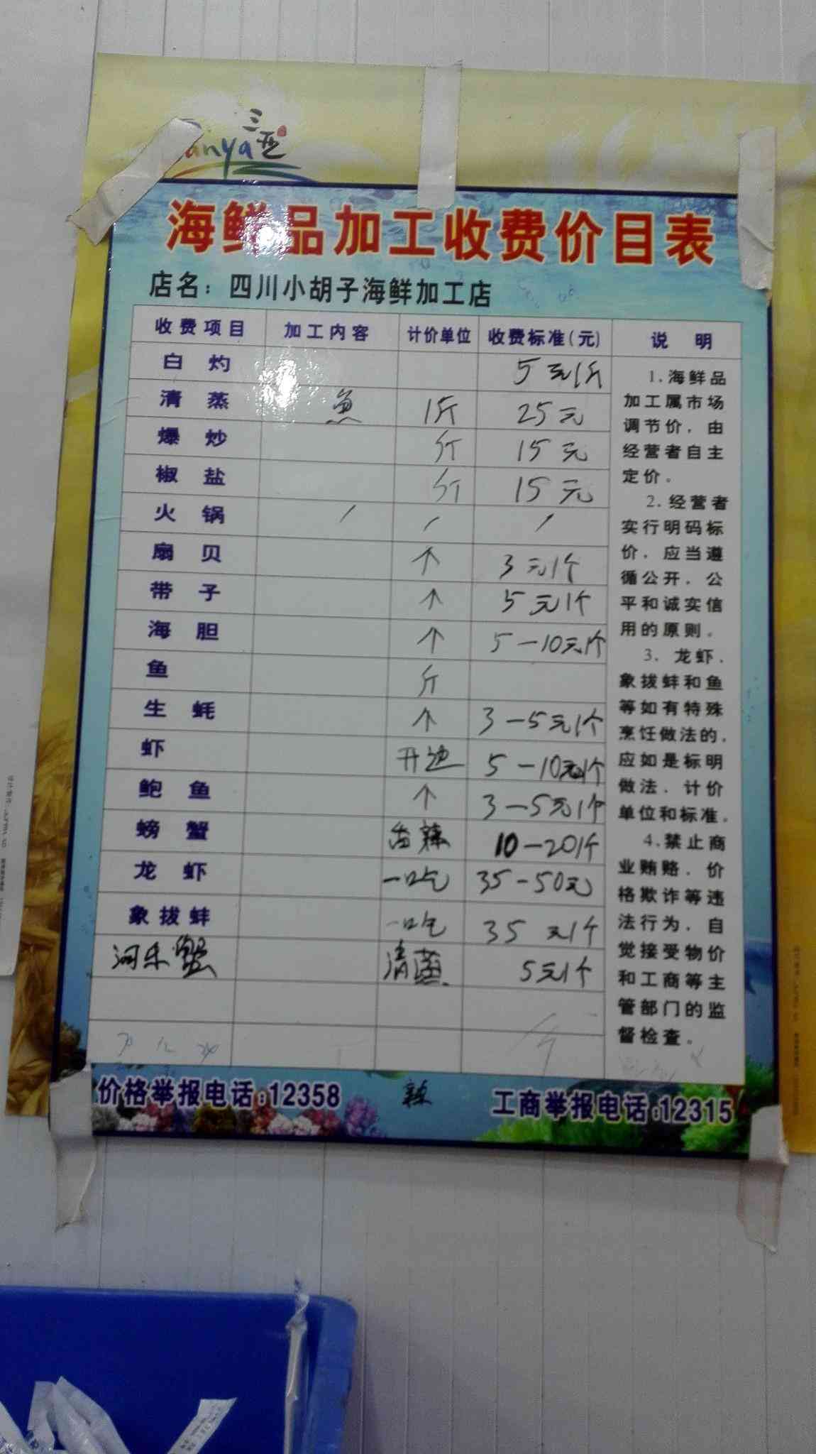 在海鲜区选购的时候会有很多人跟着你,推荐你去他家加工。如果不希望被打扰的话,就跟他们说是要买回去自己做吧。。。