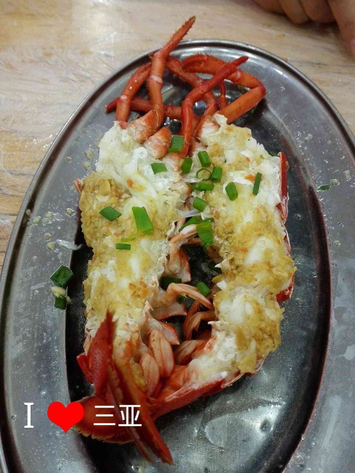 大龙虾是在市场买的,120的龙虾我讲价到100。选择两吃的做法,头熬粥,身子好像是蒜蓉吧,难道是做法太复杂了,加工费居然是70啊,快赶上龙虾本身了