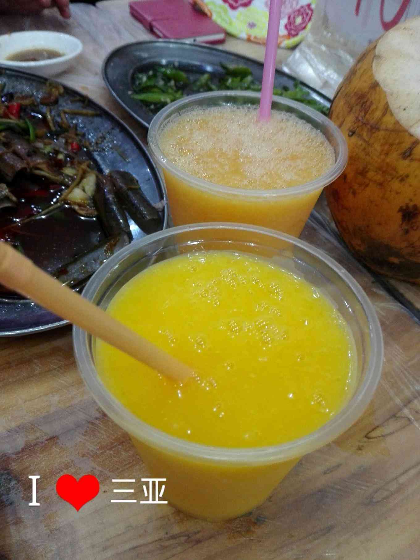 发点评送的芒果和木瓜汁,都是鲜榨的