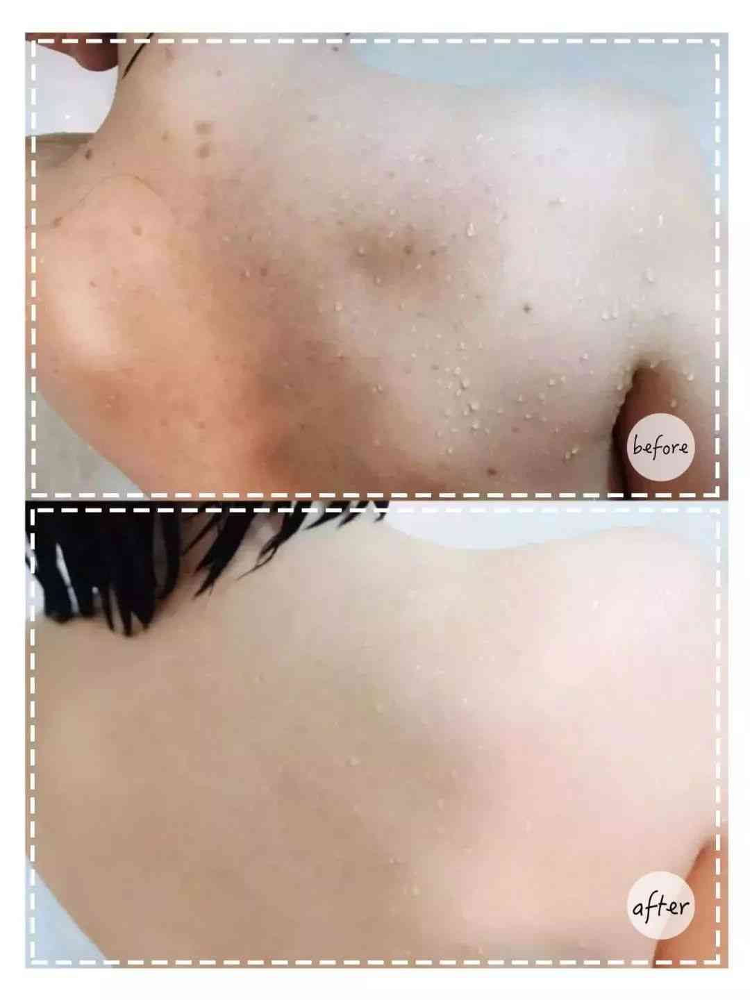 基本上用两个星期,胸前背后的痘痘就消得差不多了。