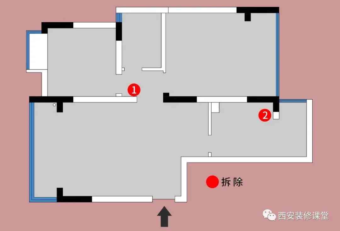 ▲最终布局图纸,原有格局几乎没有改动,因为小区老旧,物业压根提供不了房子的结构图纸,只能在铲掉墙皮以后自行判断,最终只是把进入卧室过道的一段墙砸掉,让进入卧室更通畅;厨房与洗衣间的门联窗砸掉,融为一体,拓展厨房收纳的同时,满足采光需求;其他格局一个都没有动。