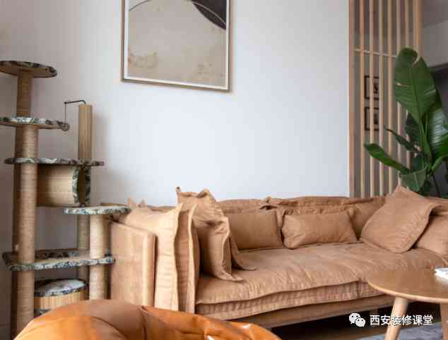 ▲原有放置落地灯的地方布置了猫爬架,给家里的小宠物提供活动天地
