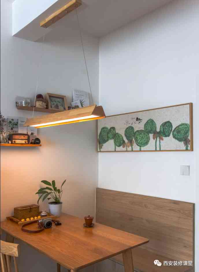 ▲禅意自然的挂画以及木质隔板的摆件装饰,小空间也能温馨自然