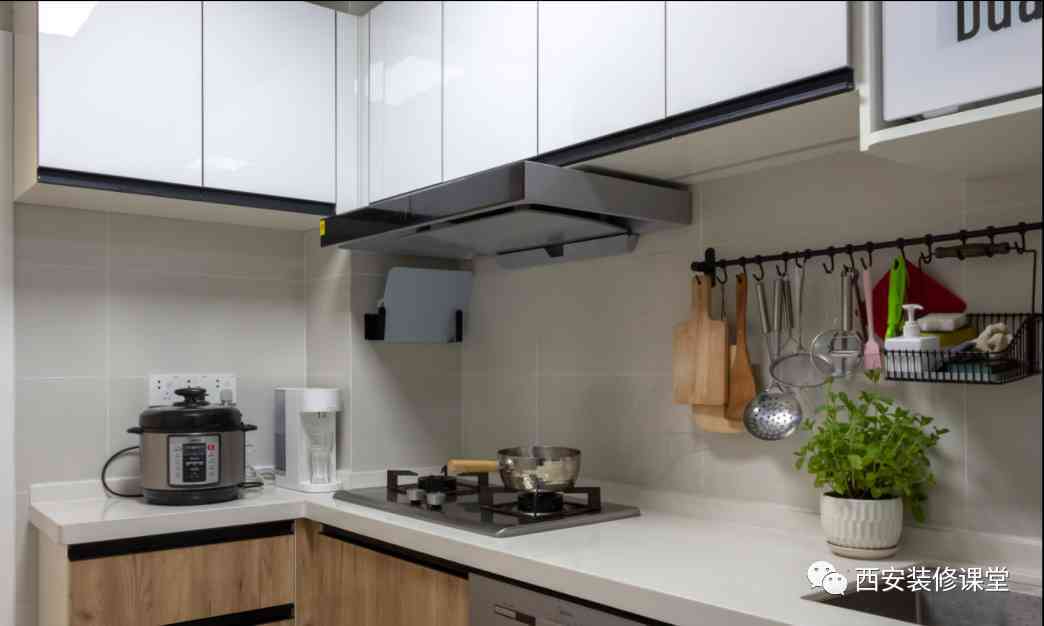 ▲L型布局,空间刚需满足基本功能,吊柜地柜尽量多做,满足烹饪区的更多收纳