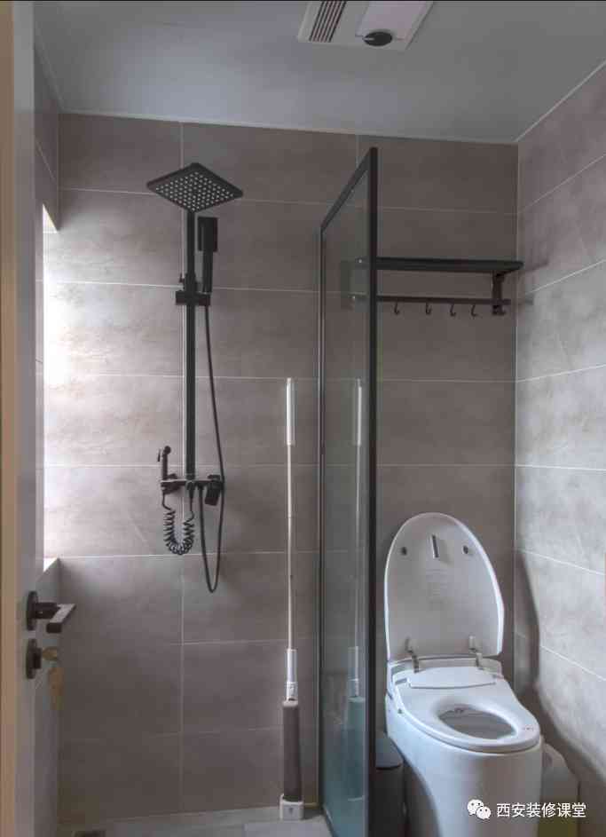 ▲马桶区与淋浴区采用半截玻璃隔断,进行分区,平时可以减少打理的麻烦