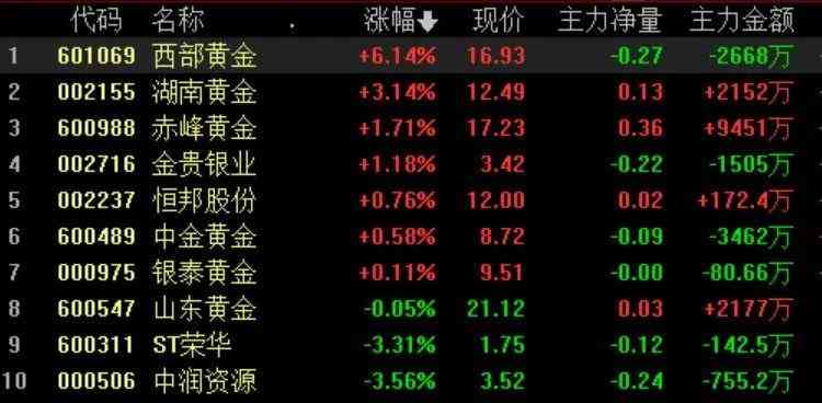 贵金属板块延续昨日的上涨态势,盘中触底反弹,午后持续拉升,其中,西部黄金涨超6%。
