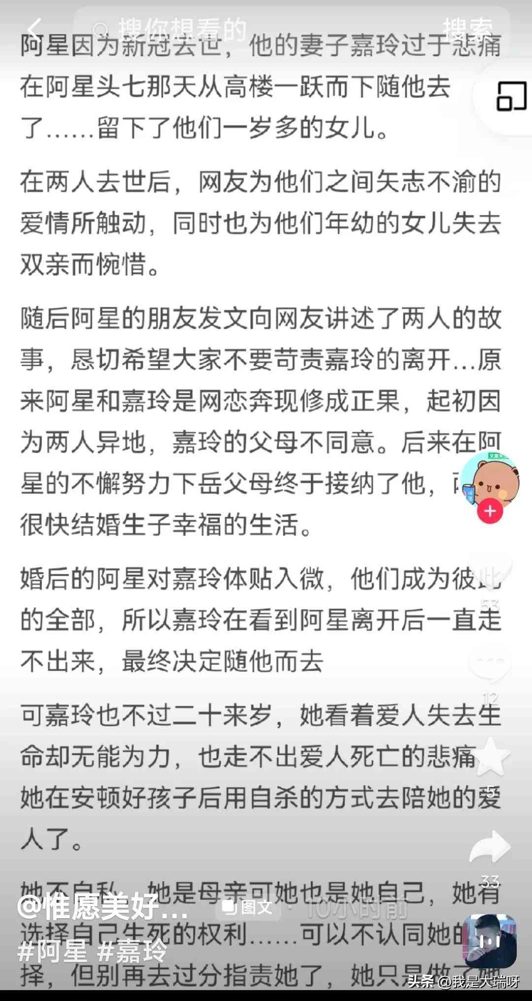 嘉玲生前透露了阿星去世的过程,事情发生在新年以前,阿星感染了新冠,已经有了发烧的症状,但是本人状态还是比较好。