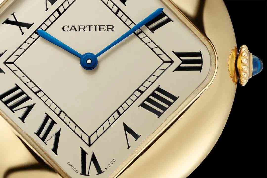 新旧版本差异主要体现在表盘logo字体。原版更接近于门店招牌和表盒上的字体,而新版则与当代卡地亚其他腕表相同。此外,新版7点时标可以看到熟悉的卡地亚“神秘签名”,而这一特征在70年代还尚未出现。