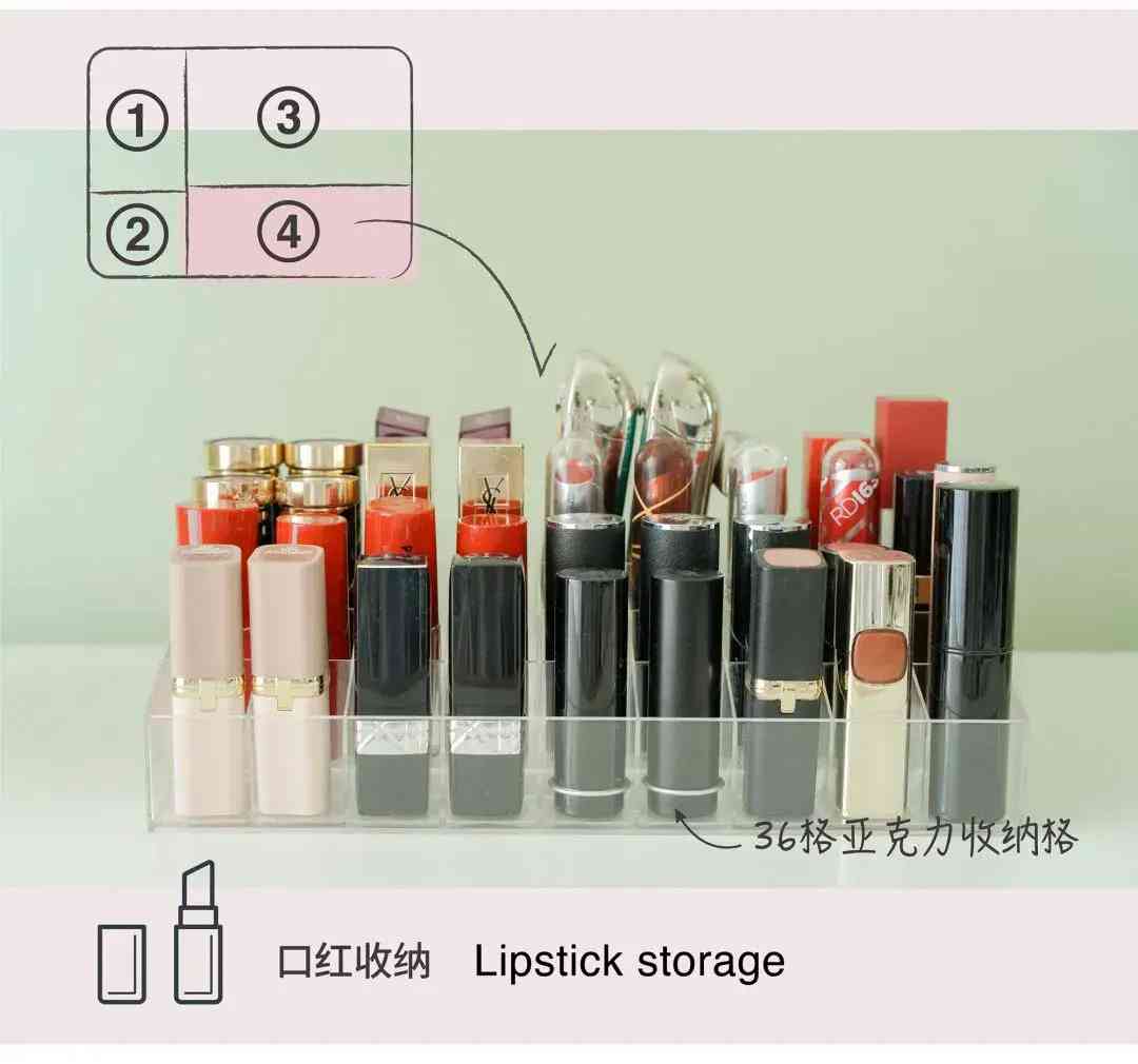 剩下的空间放了一个36格的口红架收纳口红,就算每天用一种口红,也能用一个多月了。