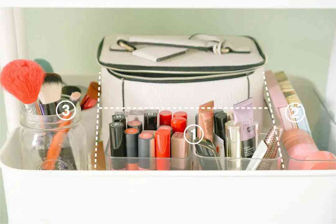 其实可以根据化妆品不同的品类进行分类收纳让桌面变得更整洁也让自己使用产品时一目了然,最重要是能拯救我的强迫症!如: