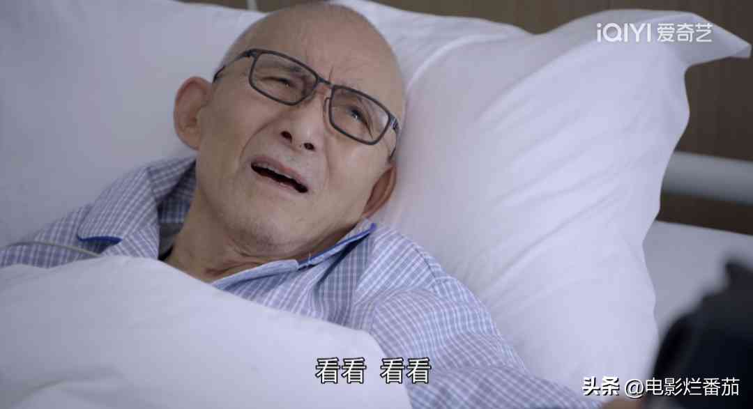 因为一直躺着或坐着,老爷子的表演只能靠眼神、表情、台词,再加上一些小动作来完成。
