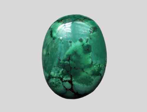 属硼酸盐类矿物。单斜晶系,常见块状晶体集合。切磨后表面玻璃光泽,半透明至不透明。硬度3—4。主要产自美洲,市场上有人叫它“美国白松”,染色后“铁线”处仍成灰白色。还有用硅孔雀石和三水铝石仿松石的,但国内市场很少见。