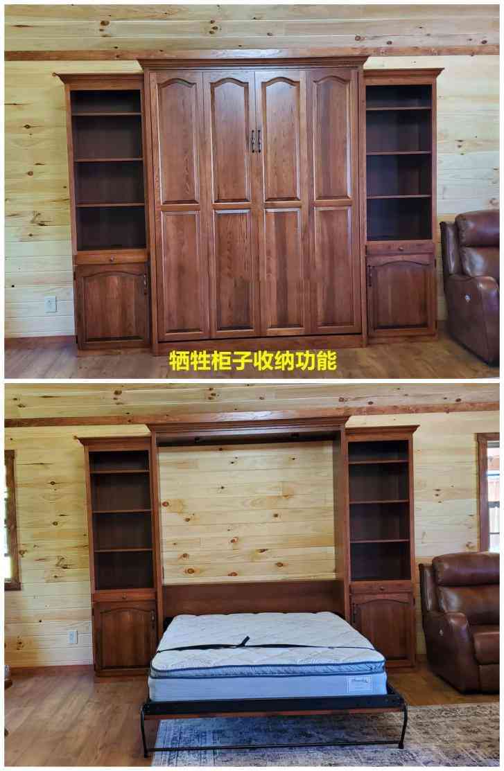 而另一种是平开式柜体,这种同样实用,不过每次将柜体打开,再打开床铺,必须得体力好的人才能做好,否则来回搬动柜体,体力吃不消。当然如果像平开门那样给装五金件的话,可能相对轻松一点。