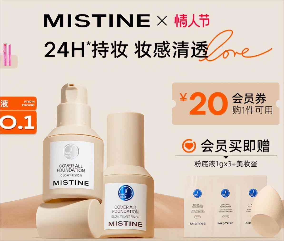 √Mistine粉底液——24H持妆 控油遮瑕妆感清透
