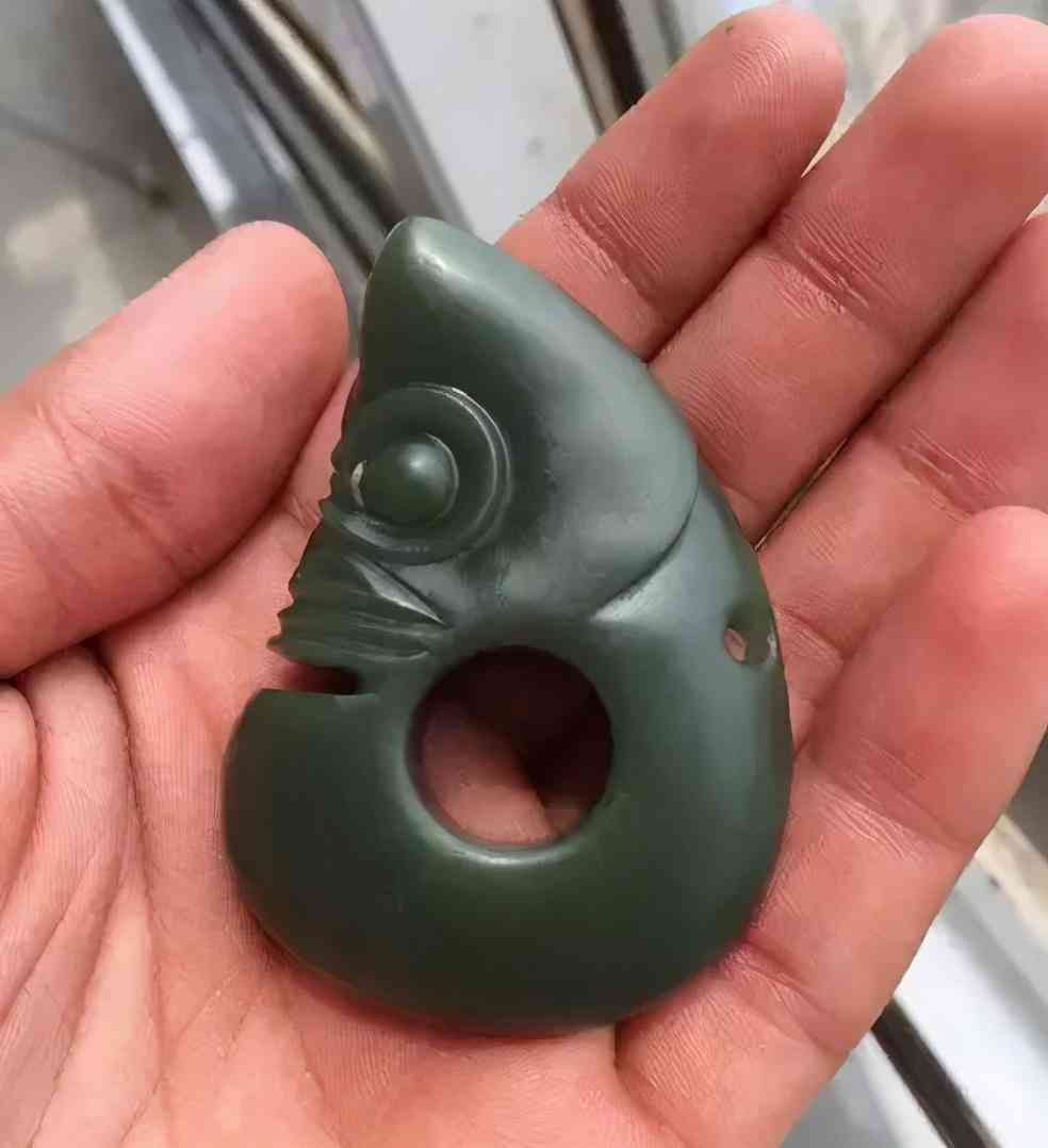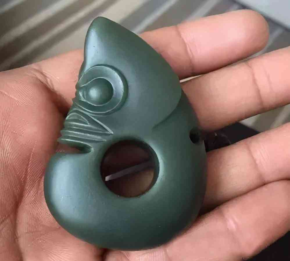 就是这玩意,还做成玉猪龙造型。这一看就知道不是翡翠,更像某种碧玉。