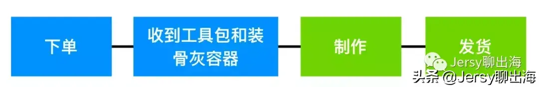 当用户下单后,会收到网站发来的【工具包】和【骨灰容器】,待用户收到骨灰后,商家会将其【标上编码】而后【制作发出】,未用完的骨灰会被退回。整个过程需要耗时4-6周。