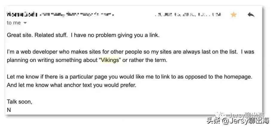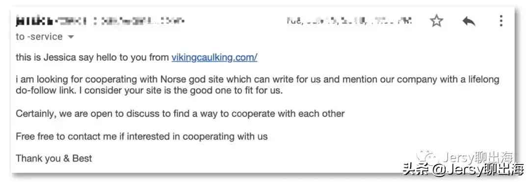 我在邮件中先介绍了自己的站点Vikingcaulking.com,一个售卖维京周边饰品的站点( this is xxxx say hello from vikingcaulking.com)