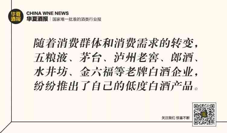 之后,众多酒企纷纷把握行业发展的趋势,相继发力低度酒市场,低度酒产品层出不穷。