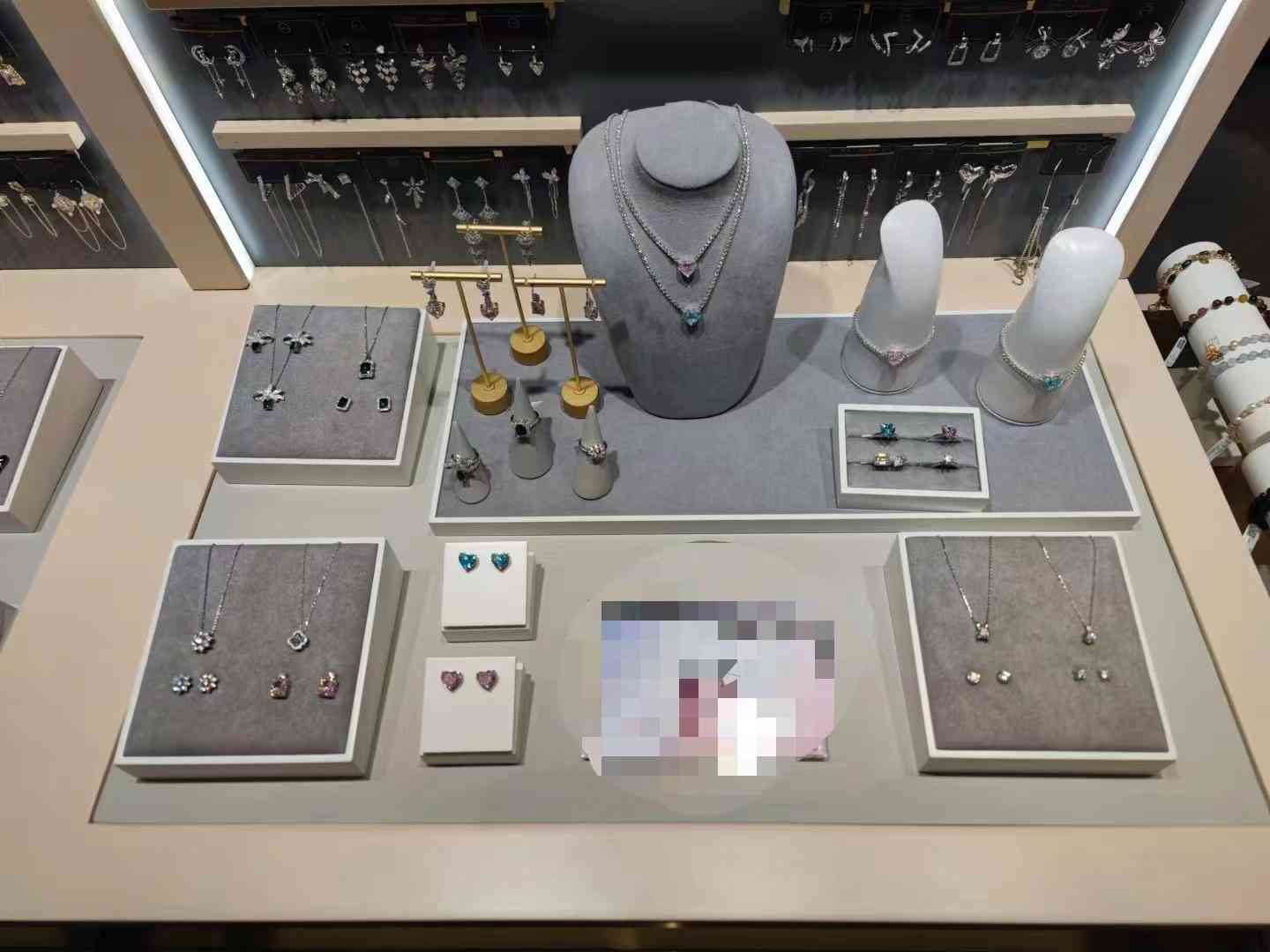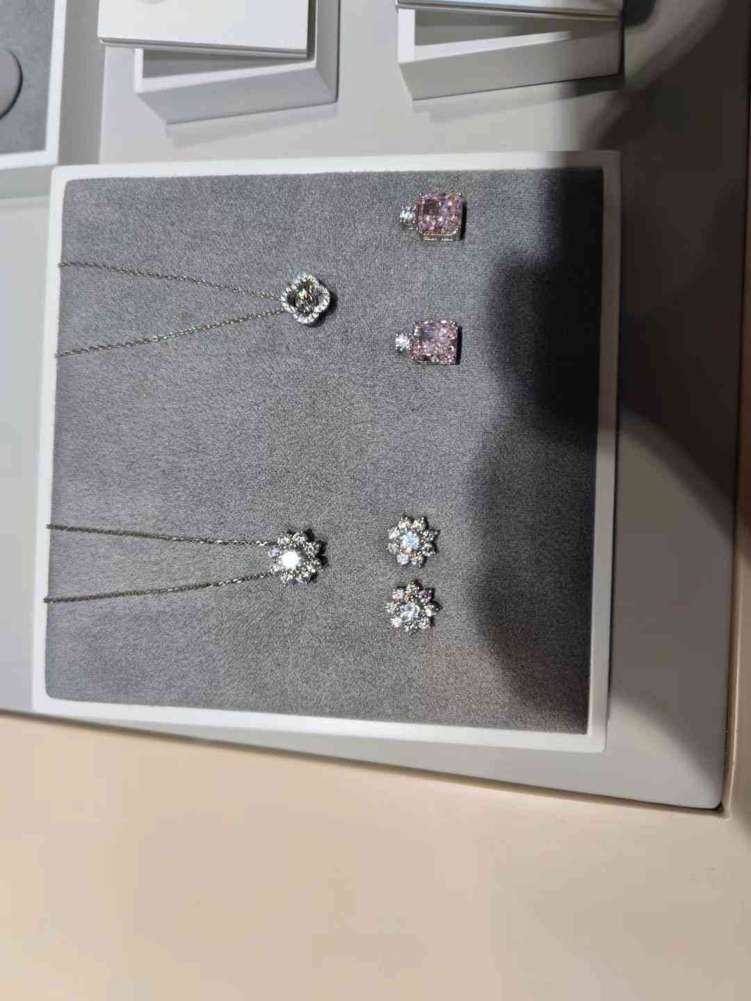 上述店员给记者展示了一套培育钻石系列,包括项链、截至、耳环、吊坠,并称“这一套下来只要2000元左右”。